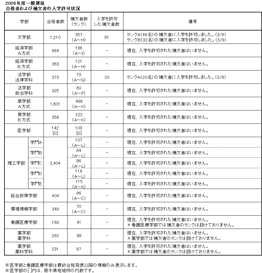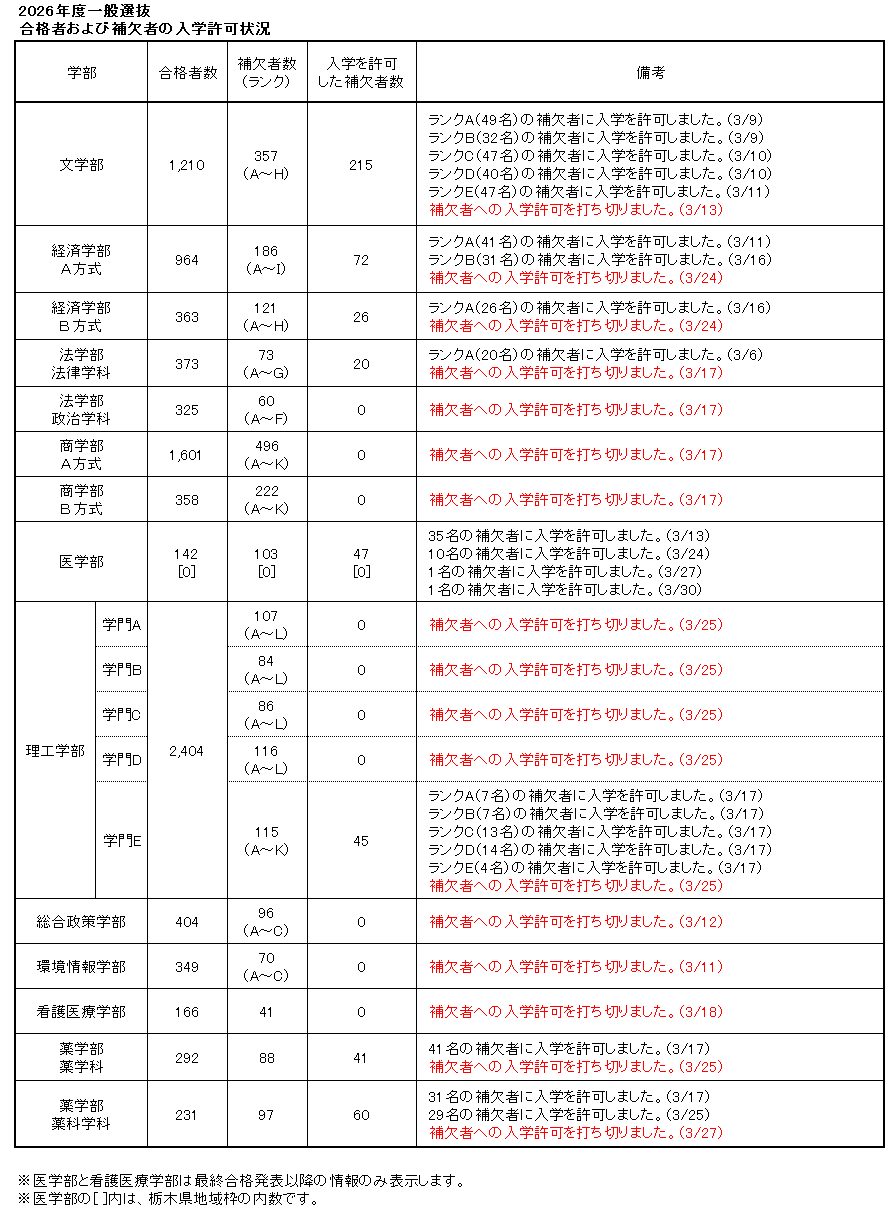 補欠者は入学が許可されるとは限りません。合格者の入学手続状況により欠員が生じた場合に限り、順次入学が許可されます。入学が許可された場合には、マイページの合否結果確認画面の表示内容が更新されますので、必ず自己の責任においてこまめに確認してください。
