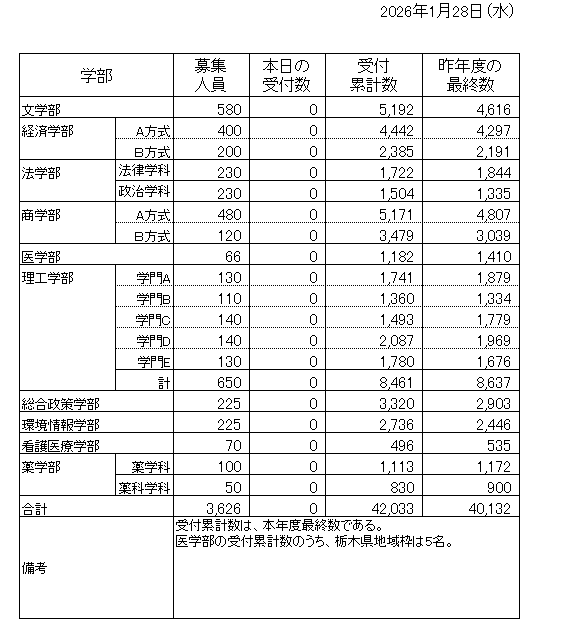 2026年度一般選抜の志願者数が確定しました。