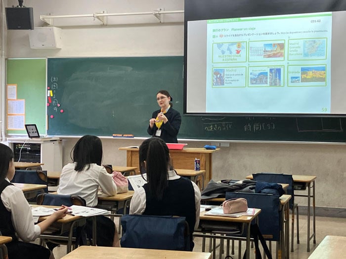 ──私は今、大学の外国語教育研究センターで副所長を務めていますが、現在、外国語教育研究センターでは、副言語をテーマに活動しています。というのも、ヨーロッパの人たちは移民の人が多く自分の国に入ってくることもあり、二言語を使って生活することが多いからです。中等部生にはスペイン語の学習を通じて、そうした点も感じてほしいと思っています。