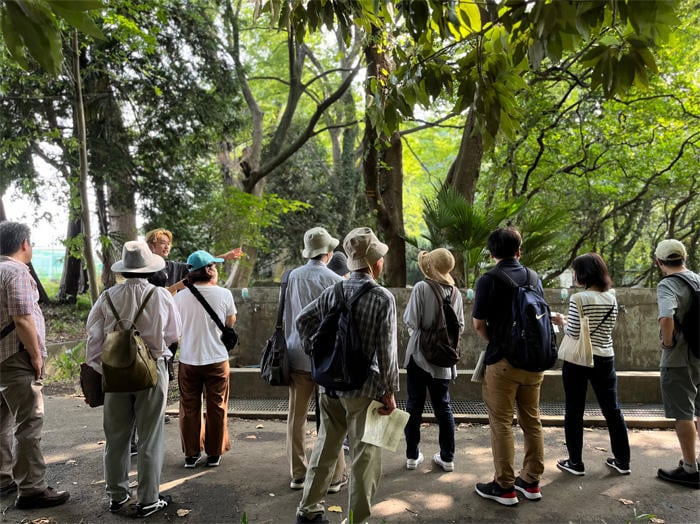 志木高内には植物の種類が約600種弱が確認されていて、その分厚い植物の層が下支えになって様々な昆虫が生活しています。私もここに来て初めて「生きて飛んでいる玉虫」を見ました。他にもクワガタ、カブトムシ、ナナフシは普通にいますし、蝶で言えばアオスジアゲハ、アサギマダラなども見かけることができます。野鳥の数も多く、20数種類。防火用水のところではほぼ毎年、カルガモが子育てをし、時にはオオタカが狩りをする様子も見ることができます。