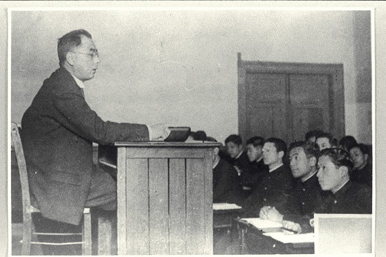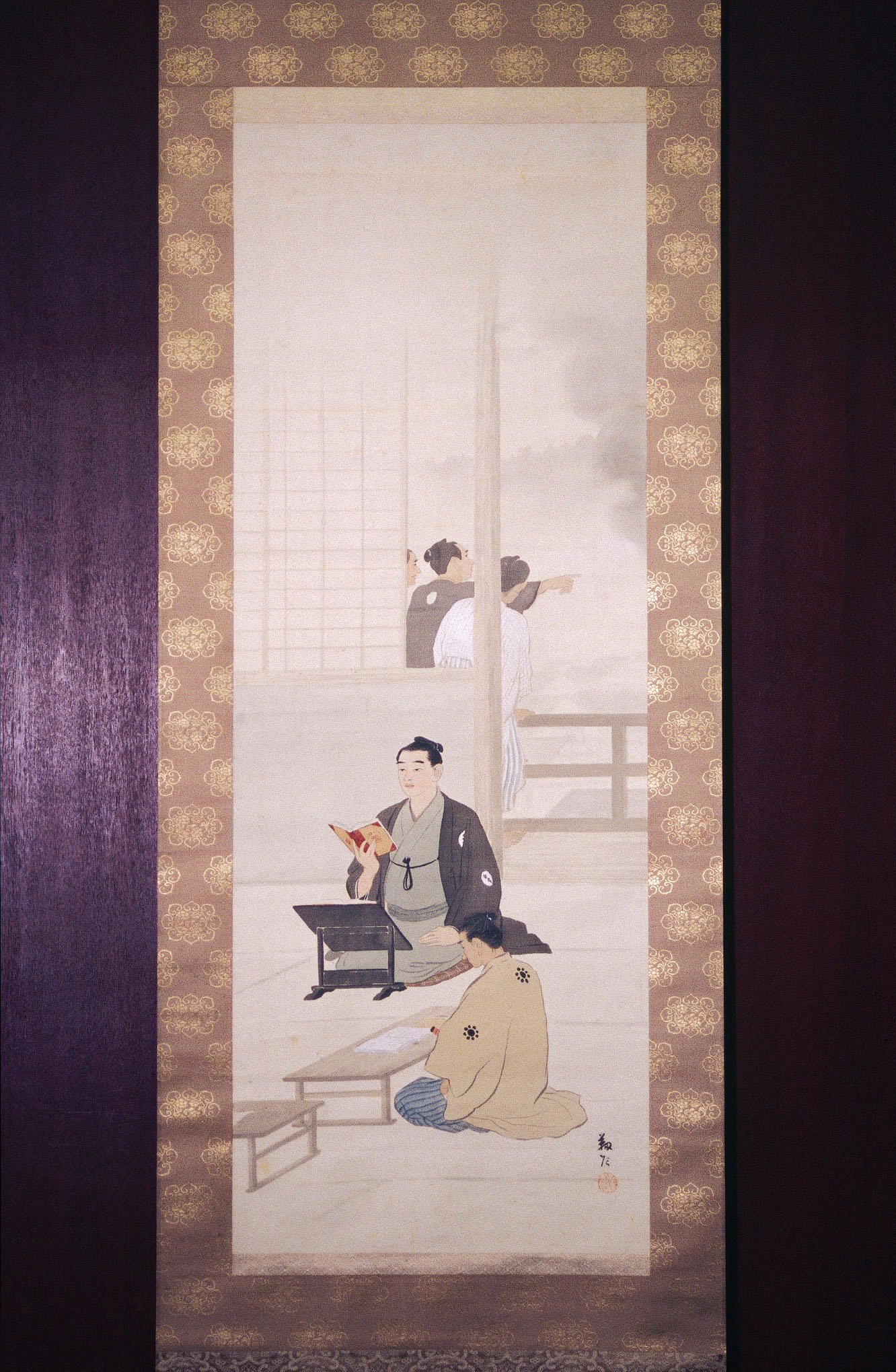 福澤諭吉が戦時中も学問を重んじたエピソードを描いた掛け軸