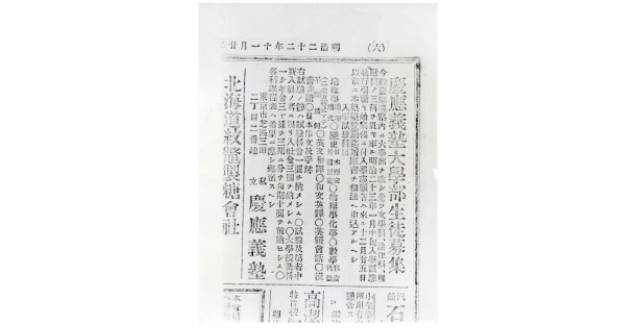 1889(明治22)年の『時事新報』に掲載された慶應義塾大学部の生徒募集の広告です。