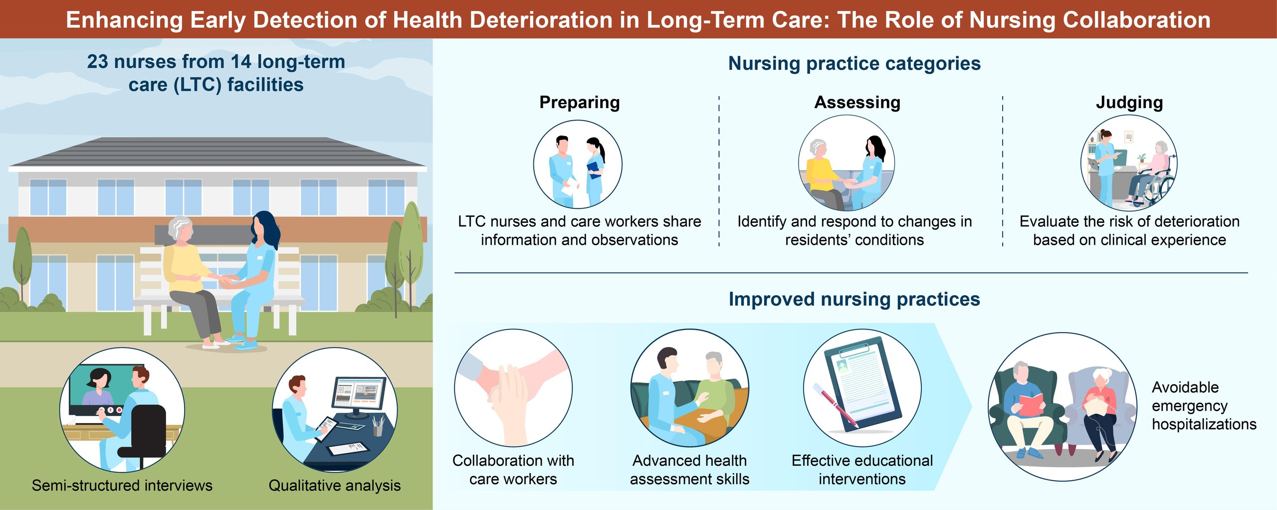 健康マネジメント研究科後期博士課程修了生(現 上智大学総合人間科学部看護学科 助教)の大河原啓文君らの研究グループは、慶應義塾大学看護医療学部の深堀浩樹教授、真志田祐理子助教、日本赤十字看護大学さいたま看護学部の松本佐知子准教授、広島大学大学院医系科学研究科の那須佳津美講師、米国イリノイ大学シカゴ校看護学部のArdith Z. Doorenbos教授との共同研究で、日本の高齢者施設で働く看護職23名へのインタビュー調査を実施し、入居者の健康状態の変化を早期に察知するための看護職の役割(看護実践)を明らかにしました。本研究結果は高齢者看護の専門誌であるInternational Jouranl of Older people Nursing誌の2025年2月号に掲載されています。