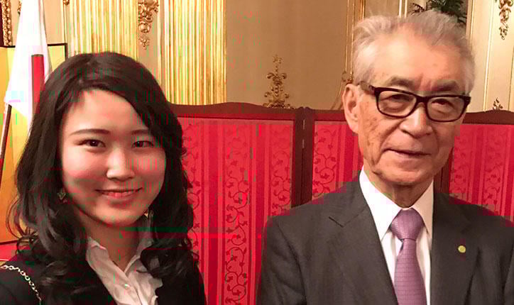 ノーベル賞授賞式で、生理学・医学賞受賞の本庶佑博士と懇談伊津野舞佳君 医学部5年