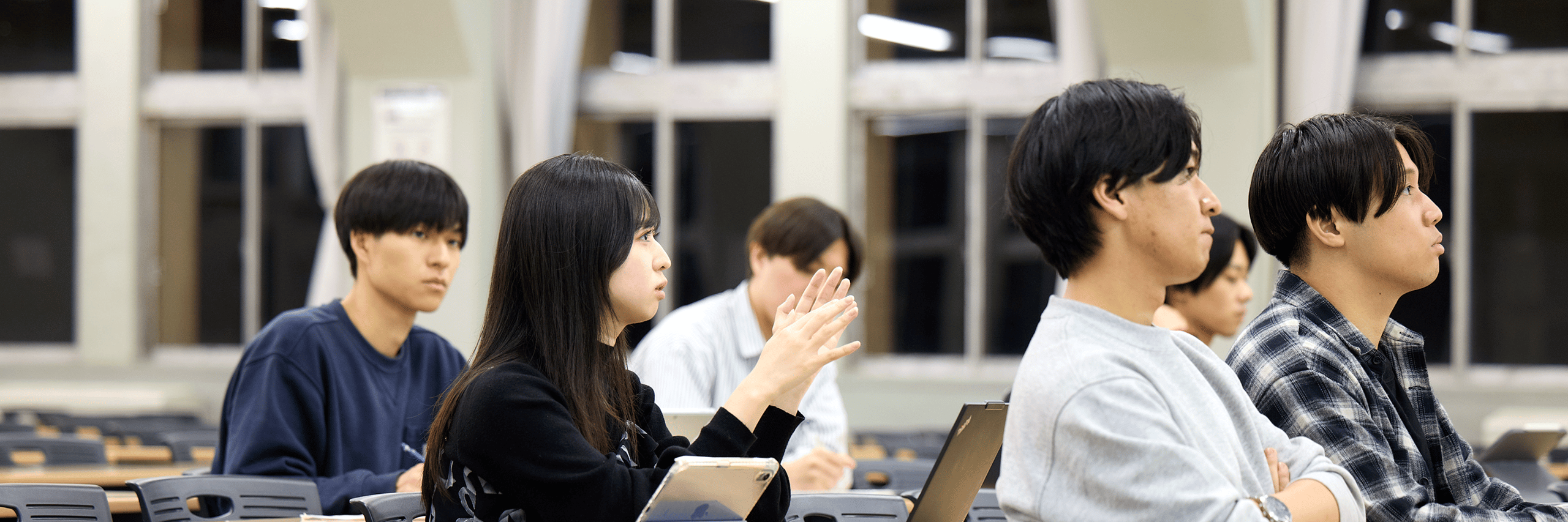 法学部では、法律学・政治学の専門的な知見を幅広く獲得し、社会の成り立ちや現象をさまざまな視点から探求できるよう、専門科目が数多く開講されています。また、主専攻と並行して、人文科学や自然科学の領域を副専攻として学ぶことができる制度も用意されています。