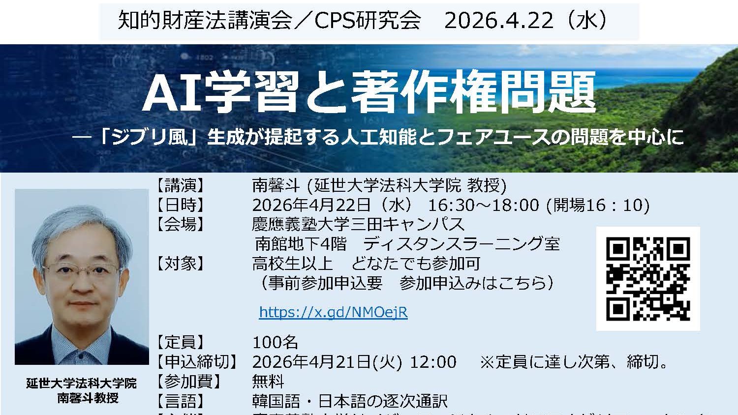 CPS研究会「AI学習と著作権問題 ―「ジブリ風」生成が提起する人工知能とフェアユースの問題を中心に」