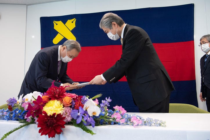 覚書締結にともなう調印式が、三田キャンパス東別館9階カンファレンスルームにて執り行われ、本学からは長谷山彰塾長、青山藤詞郎常任理事、松田隆美ミュージアム・コモンズ機構長、佐々木孝浩斯道文庫長らが、センチュリー文化財団からは清水章理事長、神崎充晴専務理事が出席しました。長谷山塾長による挨拶および概要説明を行ったのち、長谷山塾長および清水理事長が覚書に署名しました。続いて、清水理事長より寄附目録の贈呈が行われ、これに対して長谷山塾長が感謝状を贈りました。最後に、清水理事長より、慶應義塾の協力に感謝するとともに、美術資料の活用や展開に期待を寄せているとの挨拶がありました。