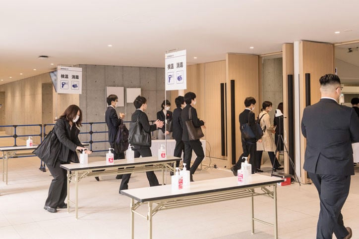 新型コロナウイルスの感染拡大防止に最大限配慮するため、参加者は新入生と一部の関係者に限られ、インターネットでのライブ配信も行いました。