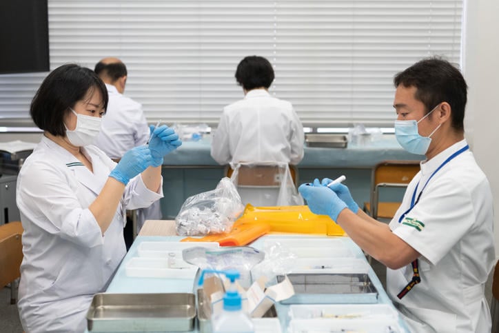 接種会場の運営にあたっては、病院・医学部・看護医療学部・薬学部・保健管理センターなどを中心としたスタッフの派遣、医学部・看護医療学部・薬学部の卒業生の方などからの協力により、順調にワクチン接種が進んでいます。