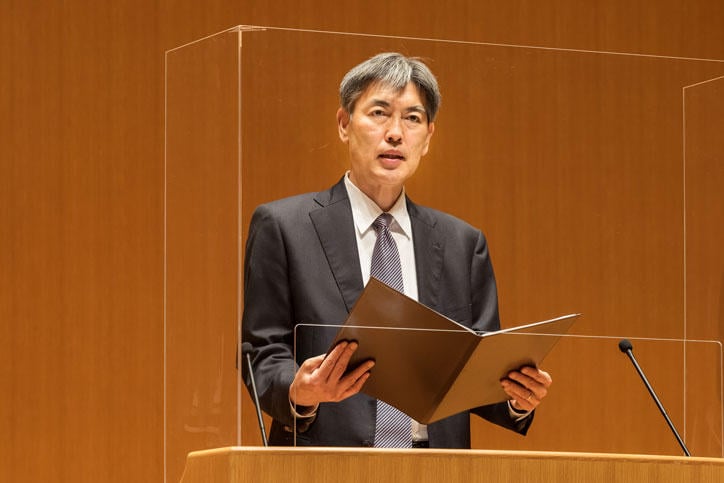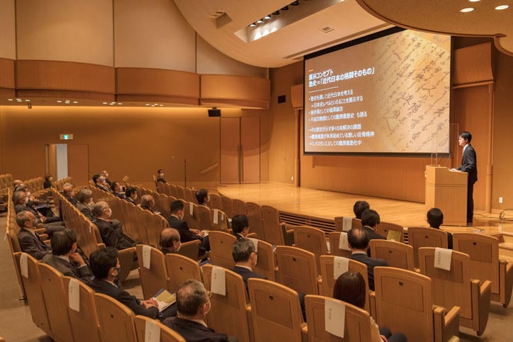 開館式では伊藤公平塾長と、慶應義塾史展示館館長を務める平野隆商学部教授による挨拶に続き、同副館長の都倉武之福澤研究センター准教授が慶應義塾史展示館について紹介する講演がありました。最後に岩谷十郎法学部長(8月から担当常任理事に就任予定)より閉式の挨拶がありました。