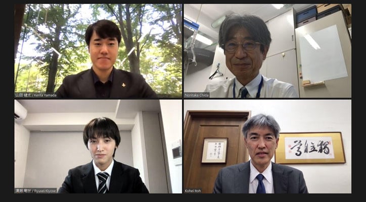 7月15日(木)、全塾協議会の塾生代表を務める山田健太君(総合政策学部2年)、全塾協議会事務局総務政策部長の清瀬竜世君(文学部2年生)がオンラインで伊藤公平塾長と面会しました。