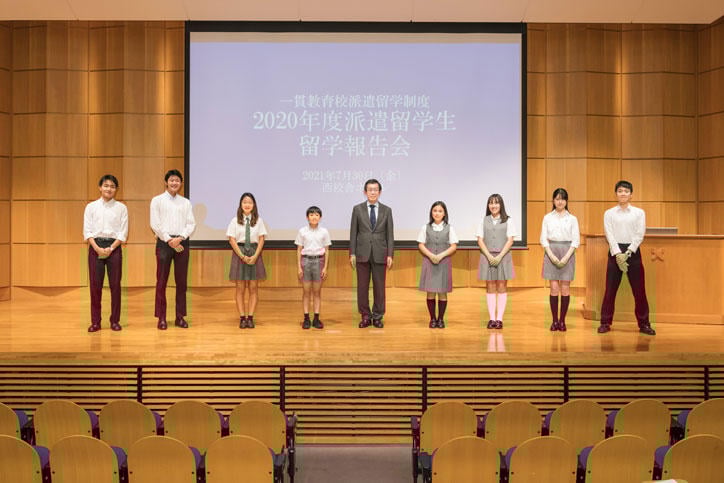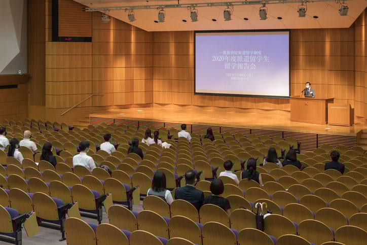7月30日(金)、三田キャンパス西校舎ホールにて、慶應義塾一貫教育校派遣留学制度による2020年度派遣留学生の留学報告会が開催されました。参加者同士が距離を確保できるよう配慮しての開催となりました。