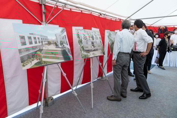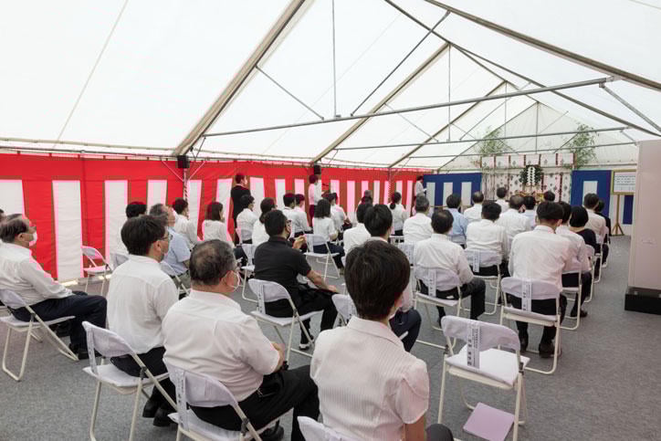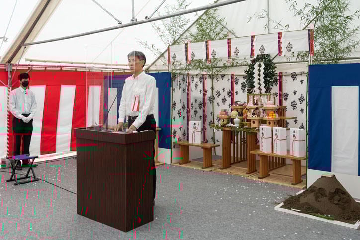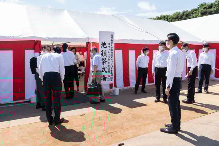 式には伊藤公平塾長をはじめとした義塾関係者と、事業者・施工者である西松建設株式会社、設計監理者である株式会社槇総合計画事務所、プロジェクトマネジメント業務を担当した株式会社インデックスコンサルティングほか関係者が列席し、神事を厳粛に執り行いました。