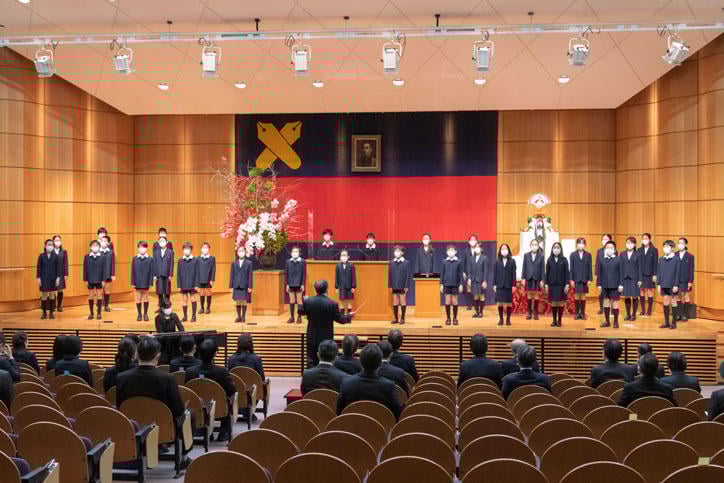 今年の式典は、幼稚舎生による「福澤諭吉ここに在り」の合唱と、ワグネル・ソサィエティー男声合唱団による「日本の誇」の合唱(収録音声)に始まり、伊藤公平塾長による年頭の挨拶、続いて福澤家を代表して福澤武君、評議員会議長である岩沙弘道君の挨拶がありました。