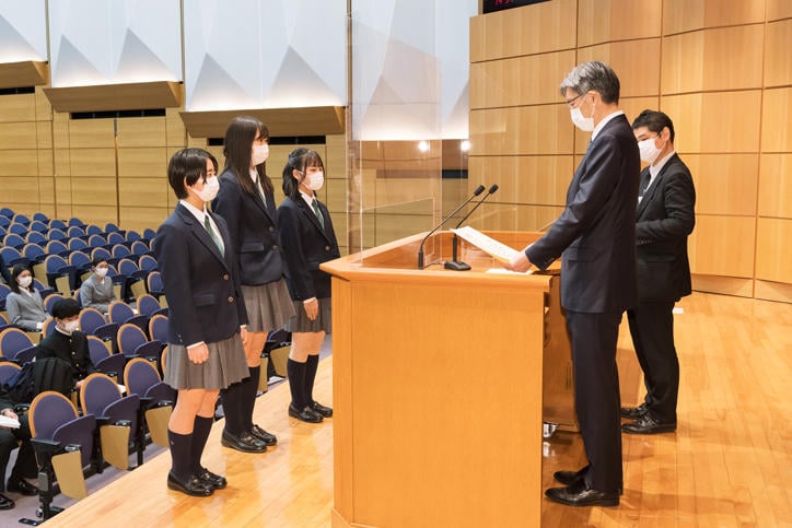 湘南藤沢中等部・高等部 6年 伊藤 萌夏 君、鈴木 美香 君、十川 愛海 君
