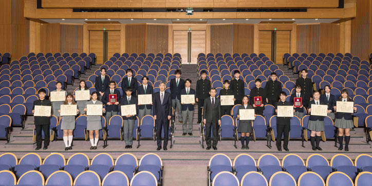 感染症対策をしっかりと行ったうえで、今年は受賞児童・生徒の保護者も参加し、記念撮影や懇談も行われ、会場は和やかな雰囲気に包まれました。
