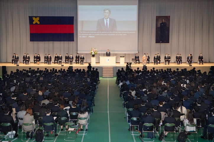 前年度に引き続き、新型コロナウイルスの感染拡大防止に最大限配慮するため、参加者は新入生と一部の関係者に限られ、インターネットでのライブ配信も行いました。
