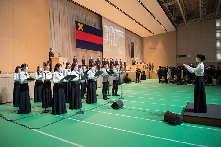 最後に、ワグネル・ソサィエティー男声合唱団、ワグネル・ソサィエティー女声合唱団による塾歌の合唱が行われ、式典は締めくくられました。