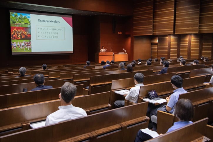 7月28日(木)、三田キャンパス南校舎ホールにて、慶應義塾一貫教育校派遣留学制度による2021年度派遣留学生の留学報告会が開催されました。参加者同士が距離を確保できるよう配慮しての対面開催となりました。