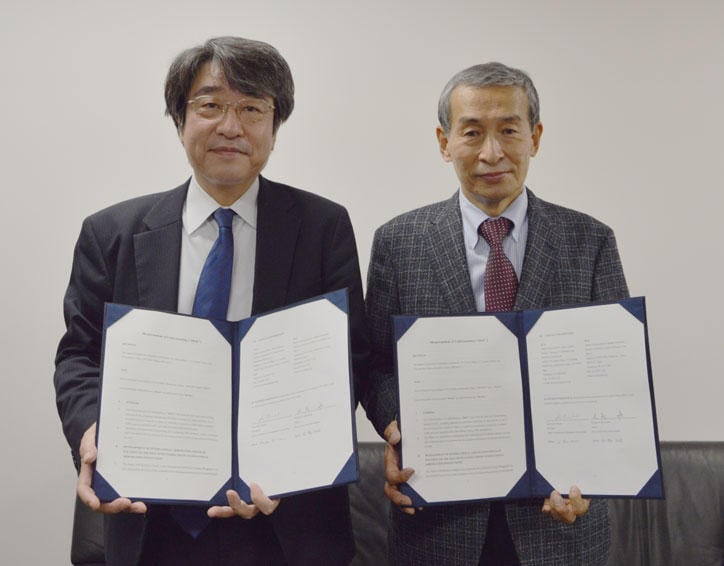 調印式では、関係者の出席のもと、法務研究科の北居功研究科委員長および一般社団法人日本商事仲裁協会の板東一彦理事長が協定書に署名しました。