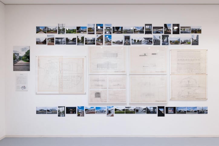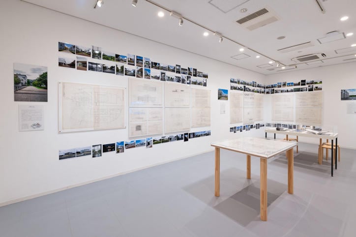 展覧会では「群造形」「視線と風景」「オープンスペース」「都市と田園」という4つのキーワードを設定してSFCに込められた槇の思想を紐解いています。今回の展覧会ではタイトルにあるように、それぞれの建築物というよりも建築と建築が関係することで生み出される空間が、実は最初から槇によって決定していたことを紹介しています。つまり槇は建築物の「あいだ」にどのような空間を設けたいか、ということを最初に考え、その空間に相応しい建築を作っていく、という手順で建築群を構成していったのです。そうしてSFCに散りばめられた大小様々な空間は機能においても多様性があり、学生の多岐にわたる活動や振る舞いを許容する、弾力性のあるキャンパスの基盤となっています。