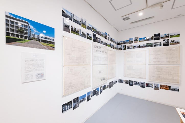 展覧会ではキーワードを解説したパネルのほか、SFCに無数にある建築の「あいだ」を撮影した写真、またそうした空間に面した建築物や敷地、緑化計画の図面が展示されています。また実際の空間を感じてもらえるように、SFCを歩いて撮影した動画も見ることができます。ぜひ展示室でSFCの空間を感じてみてください。