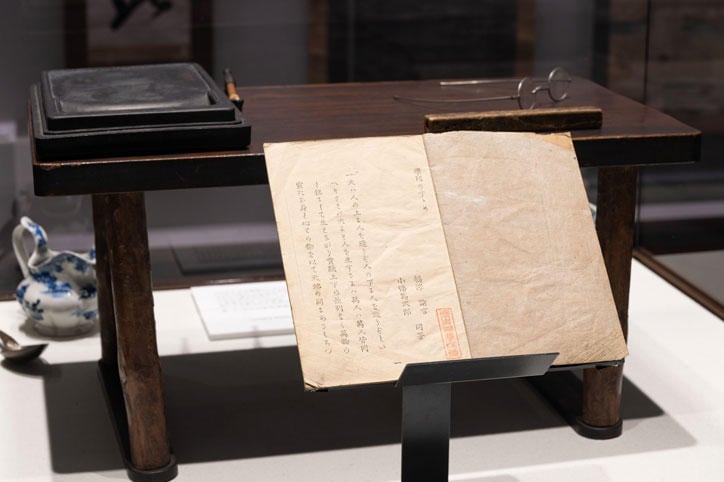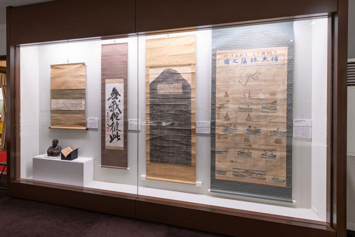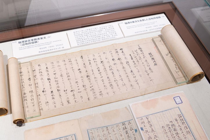 今回の展覧会は、『学問のすゝめ』およびこの事件に関する様々な資料を一堂に会したもので、福澤自筆の嘆願書代筆原稿はもちろん、事件解決後の村の人々と福澤家・慶應義塾との交流に関する資料も展示されています。長沼の人々に伝えられている福澤諭吉を称える歌も、今回歌って頂き会場で流しています。