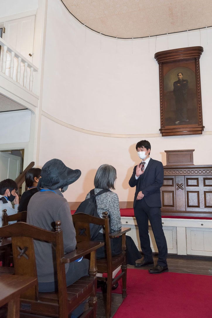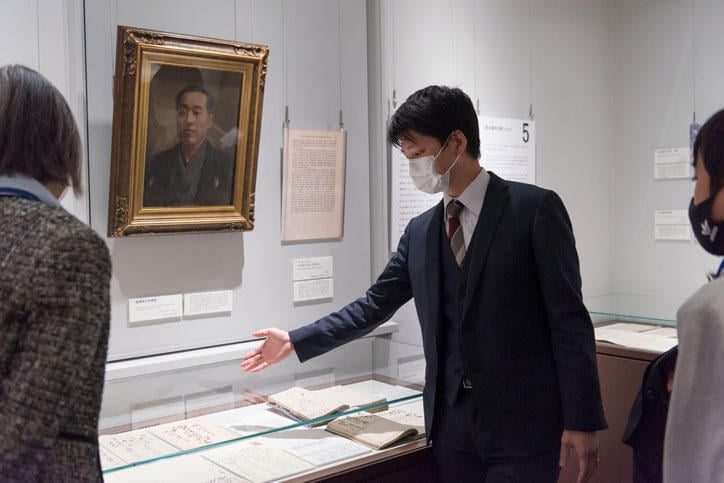 11月8日には第1回のギャラリートークが開催され、同館副館長都倉武之准教授による説明に、来場者が熱心に聞き入る姿が見られました。
