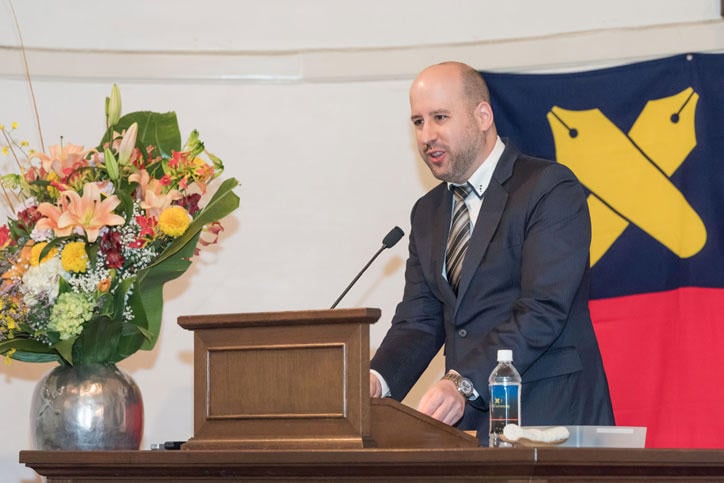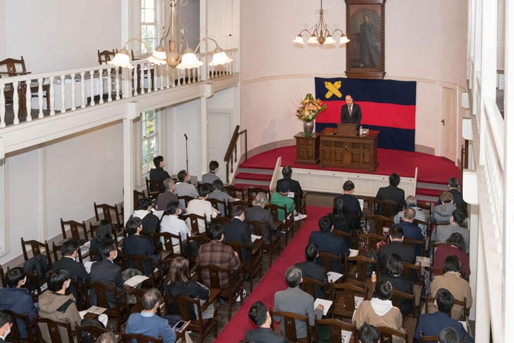 12月20日(火)、三田演説館にて慶應義塾の伝統行事である三田演説会が開催されました。第711回の今回は、「近代日本の翻訳文化と福澤諭吉」というテーマで、アルベルト・ミヤンマルティン経済学部准教授 兼 福澤研究センター所員が講演を行いました。