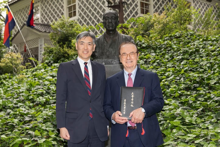 4月25日(火)午後2時より、三田演説館にて、カリフォルニア大学バークレー校ハース経営大学院教授であるデービッド・J・ティース氏に対する慶應義塾大学名誉博士称号授与式が行われました。