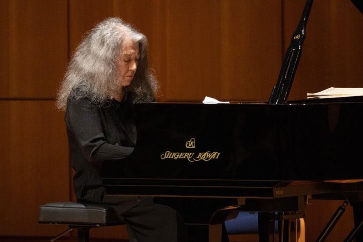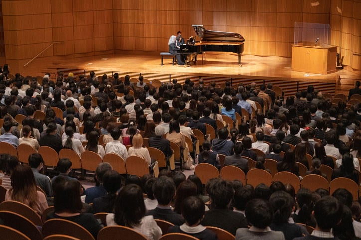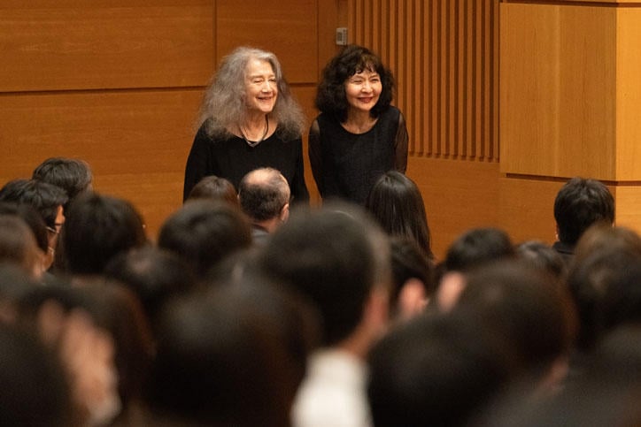 当日は、アルゲリッチ氏のソロにより、J.S.バッハの「イギリス組曲 第3番 ト短調 BWV808 5.ガヴォットI - II(ミュゼット)」とM.ラヴェルの「水の戯れ ホ長調」が演奏された後に、公益財団法人アルゲリッチ芸術振興財団副理事長であるピアニストの伊藤京子氏との連弾によりM.ラヴェルの「マ・メール・ロワ」が演奏されました。