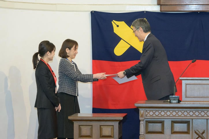 2022年度のパイロット版は、3月には修了式が開催され、伊藤塾長から19組のメンターとメンティーのペア合計38名に修了証が手渡されました。修了式ではそれぞれのペアからコメントが述べられ、メンティーからは所属学部以外のネットワークができたこと、この度の出会いから共同研究の話に発展したといった出来事や、研究室の運営や女性が陥りがちなマネジメントの傾向などについて相談できたことなどのメリットがあげられました。メンターからは、自身の経験を言葉にすることの大切さ、あえて後輩には語ってこなかったことを話せたなどの感想が寄せられ、双方ともに実りのあるプログラムであることが実証されました。奥田暁代常任理事の挨拶では、個と個がつながり、ネットワークとなることの大切さに触れ、引き続き慶應義塾らしいエンパワメントを推進する決意が語られました。
