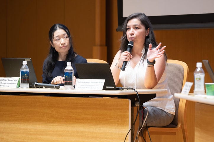 シンポジウムは、伊藤公平慶應義塾長、奥田暁代慶應義塾常任理事・協生環境推進室長の開会の挨拶で始まり、小原京子理工学部教授がモデレーターを務めたディスカッションでは、多様な経験から学ぶことなどを中心にAPWiL(Asia Pacific Women in Leadership)のメンタリング・プログラムに取り組む各国の大学の研究者と慶應義塾大学の女性研究者による活発な議論が交わされました。