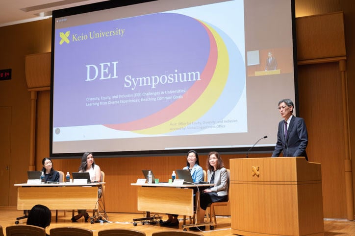 6月12日、三田キャンパス北館ホールにて、協生環境推進室主催のシンポジウム「大学におけるDiversity Equity and Inclusion(DEI)の課題―多様な経験から学び、共通の目標を達成するために」が対面およびオンラインのハイブリッド形式で行われました。