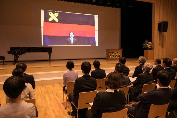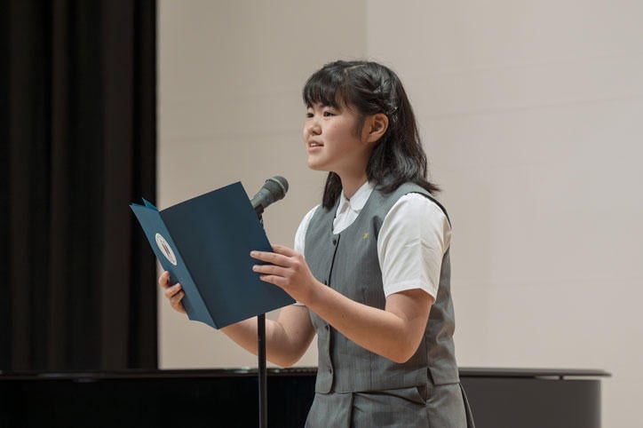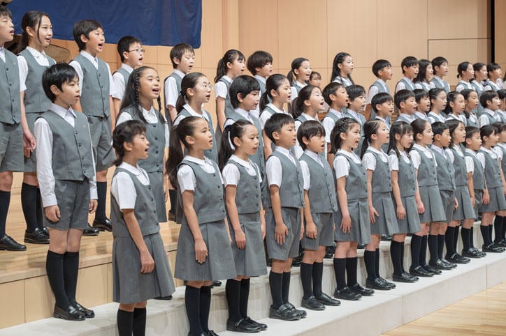 横浜初等部は2023年4月に開校10周年を迎えました。6月9日(金)には横浜初等部講堂にて横浜初等部開校10周年記念式を開催しました。記念式では馬場国博横浜初等部長による式辞、伊藤公平塾長と同窓会代表からの祝辞に続き、6年生が編集したメモリアル・スライドが放映され、一同で視聴しました。その後、2年生から6年生までの代表生徒3名による記念作文の発表、3年生から6年生までの生徒から選抜された合唱隊により10周年記念歌「青草の丘は」が披露され、閉式となりました。
