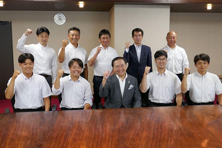 7月31日(月)には、森林監督と野球部員らが神奈川県庁、横浜市庁舎、朝日新聞横浜総局、神奈川新聞社、テレビ神奈川を訪問しました。