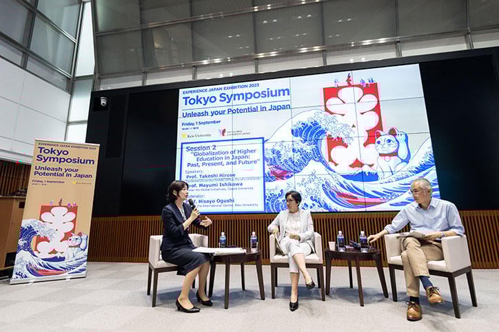 慶應義塾大学は、文部科学省スーパーグローバル大学(SGU)創成支援事業の一環として、2023年9月1日に三田キャンパスにて"Experience Japan Exhibition 2023 | Tokyo Symposium: Unleash your Potential in Japan" を開催しました。2014年度に始まったSGU事業の最終年度の今年、本シンポジウムでは、同事業における取組みを日本への留学生の受入れに着目して振り返り、課題と展望とを共有しました。