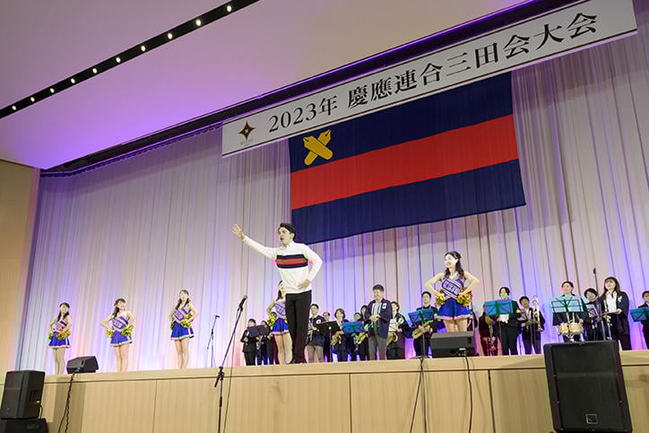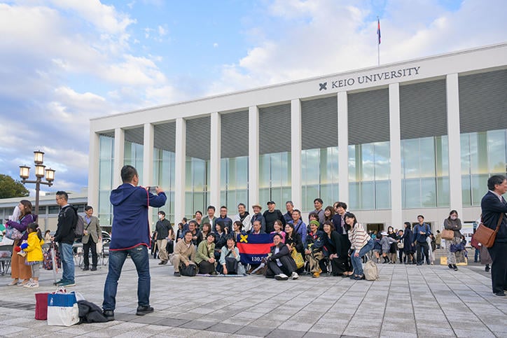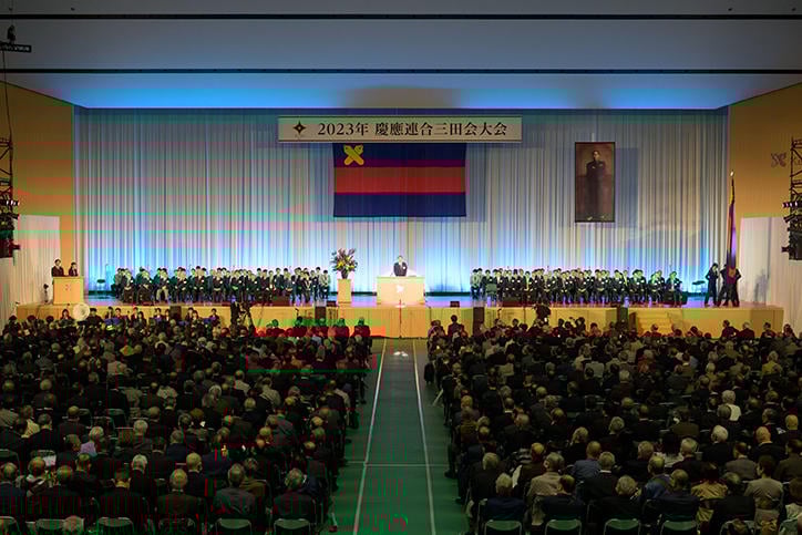 10月15日(日)、2023年慶應連合三田会大会が、4年ぶりに感染者対策等の制限のない形で、慶應義塾社中の皆様、日吉の近隣の皆様に向けて日吉キャンパスで開催されました。今年は「あらためて、希望の明星仰ぎて此処に」をスローガンとし、コロナによる様々な社会の変化を経験し、あらためて未来への希望を胸につながろうという想いがこめられました。