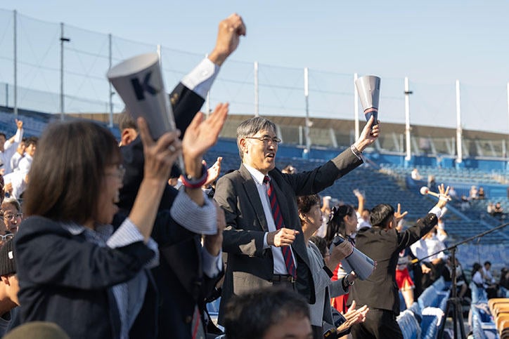今季は、栗林泰三君(環境情報学部4年・外野手)が三冠王を獲得し、さらに栗林君と外丸東眞君(環境情報学部2年・投手)と宮崎恭輔君(環境情報学部4年・捕手 )の3名がベストナインに選ばれ、輝かしい記録を残しました。