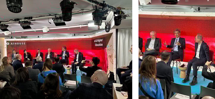 また、伊藤塾長は、東京大学Beyond AI 研究推進機構ほかが開設したAI Houseでのセッション「AIと高等教育(AI and Higher Education)」に、Irene Traceyオックスフォード大学総長、Brian Schmidtオーストラリア国立大学前学長、Paul Alivisatosシカゴ大学学長、Eng Chye Tanシンガポール国立大学学長と共に登壇しました。同セッションのモデレータは、藤井輝夫東京大学総長が務めました。生成AIがもたらす課題に取り組み、その活用を促進することによる高等教育の発展、及び、生成AIが人間の知能の様々な側面を代替していく中で、高等教育、特に大学教育はどのように進化していくべきかをテーマにパネルディスカッションが行われました。