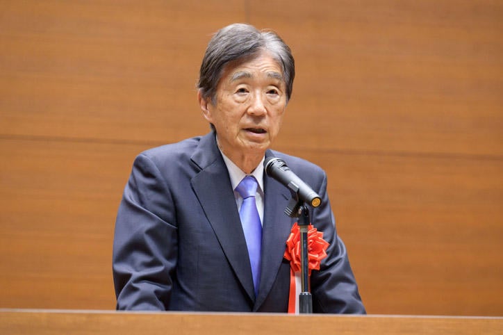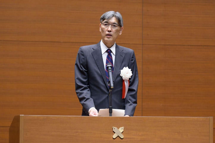 伊藤公平塾長はこれまでの大学におけるAIに関する研究や活動について、学生同士が教え合うAI・高度プログラミングコンソーシアムや生成AIラボの発足、文理融合で学部・研究科横断的な研究拠点の設置などを行ってきたと説明しました。今回開設する慶應AIセンターはAIそのものに関する最先端の研究を実施し、産業界とともにこれからのAIを作り上げていくセンターであると述べ、今後の研究活動への期待を寄せました。