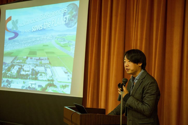 慶應義塾からは、土屋大洋常任理事、荒川和晴教授(先端生命科学研究所 所長)、新井康通教授(百寿総合研究センター所長)ら9名の研究者が参加し、先端生命科学研究所の研究成果から誕生した大学発ベンチャーの活動や100歳以上の方々の長寿の秘訣を医学的に明らかにする研究などが紹介されました。