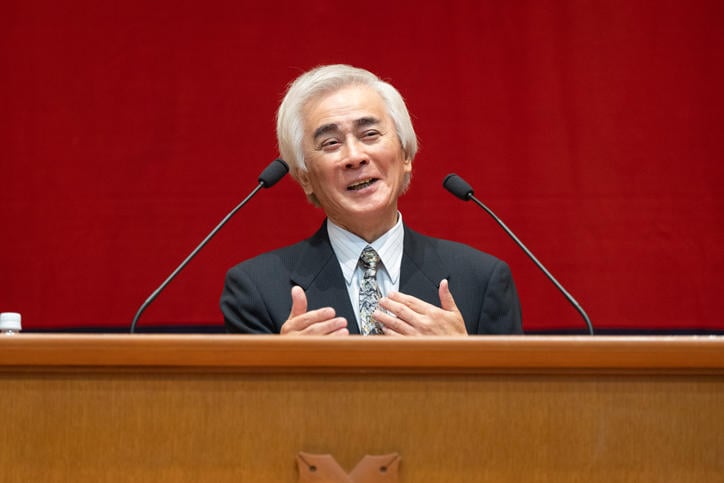 続いて、杉山伸也慶應義塾大学名誉教授による記念講演「福澤諭吉『民情一新』と「文明の利器」」が行われました。講演の中で杉山名誉教授は、『民情一新』(1879年)を科学技術の発展を重要視する福澤の思想が書かれた新しい文明論であると紹介しました。『文明論之概略』(1875年)で示された無形の「文明の精神」の醸成を重要視する考えから、有形の「文明の利器」、つまり科学技術を重要視する、福澤の思想の転換点になった著作として『民情一新』の重要性を語る内容に、参加者は興味深く耳を傾けていました。