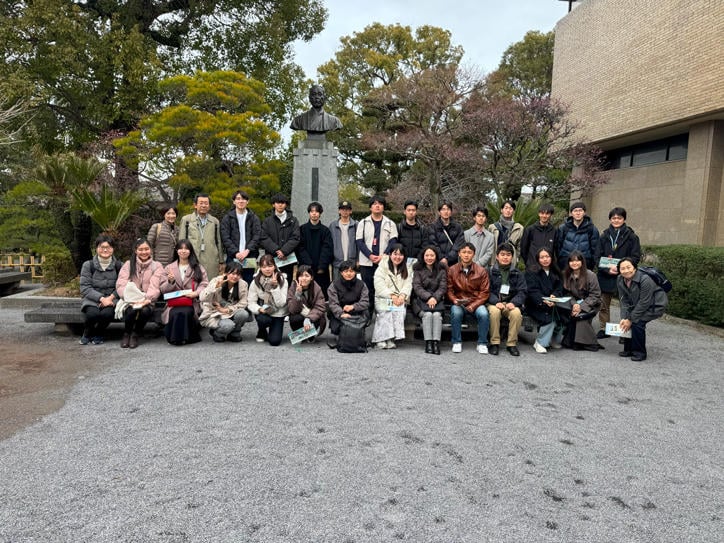 3月5日(水)から7日(金)までの2泊3日で、学生総合センター企画「福澤先生ゆかりの地を旅する-中津・小国町-」を開催しました。山内慶太常任理事、都倉武之福澤研究センター准教授を講師に迎え、1~2日目は福澤先生が幼少期を過ごした大分県中津市を、3日目は福澤先生の支援を受けて日本の医学発展に貢献した北里柴三郎先生が生まれ育った熊本県小国町を巡りました。学部生から大学院生まで、さまざまなキャンパスや学部・研究科の塾生25名とともに奥田暁代常任理事も参加し、塾生たちと交流を深めました。
