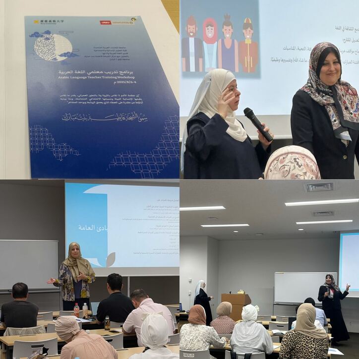 2025年8月4日から3日間にわたって、慶應義塾大学日吉キャンパスにて「シェイハ・ファーティマ・アラビック・ラーニングセンター(ALC)」主催のアラビア語教師養成講座を開催しました。アラブ首長国連邦大学(United Arab Emirates University)の協力のもと実施された本講座では、同大学から派遣された講師陣により、アラビア語教育に関する専門的な指導が行われました。全日程を修了した参加者には、修了証が授与されました。