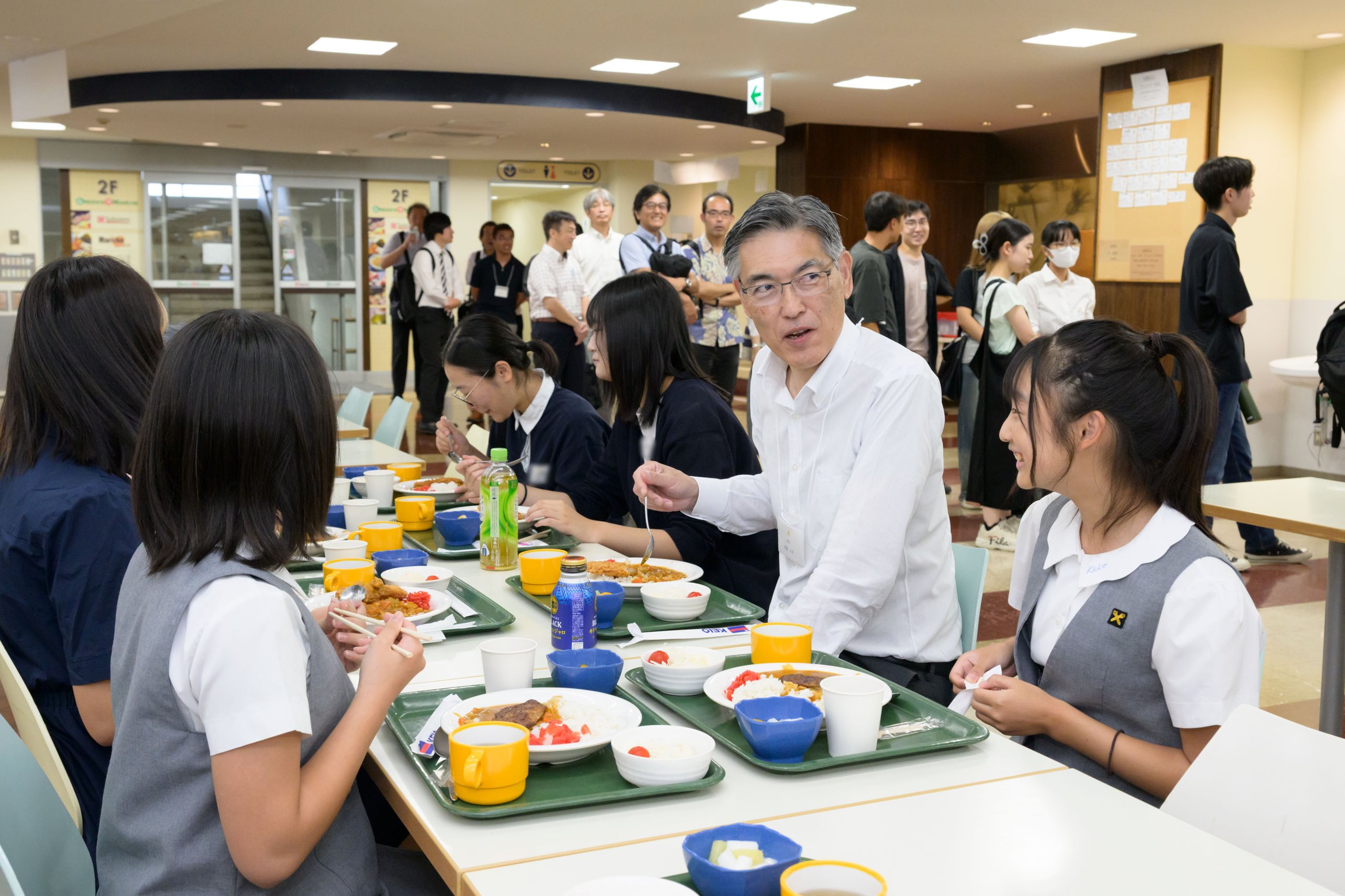 最後に、各グループから、環境ポイントの導入、キャンパス内ビジネスの活性化、自家農業・自家発電、リサイクル、学校間の連携、留学生支援などに関してアイデアが提案され、参加者同士で活発な質疑応答が繰り広げられました。本日の取り組みについて、各一貫教育校の教員、山内慶太常任理事、最後に自然科学研究教育センター岡本昌樹所長から、講評が述べられ閉会となりました。