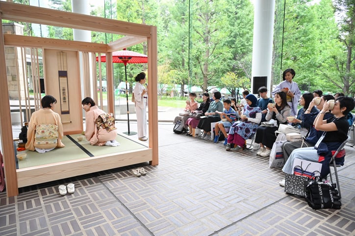 キッズ向けには「SASUKE」のKIDS版体験会やオリンピック選手と一緒に楽しめるフェンシングや陸上の体験会、ラクロスやフラッグフットボール、ピックルボールといった普段なかなかできないスポーツ体験が多数用意され、多くの親子連れで賑わいました。来往舎イベントテラスには、宮大工の棟梁によって伝統建築技術を駆使した「モバイル茶室」が組み立てられ、木のぬくもりに満ちた茶室でたてられたお茶を楽しむ人々の様子がみられました。その他にも藤原洋記念ホールでのJazz & Popsのコンサート、第4校舎や独立館での講演会、小学生向け「きかくのがっこう」など、魅力的なプログラムが多数開催されました。