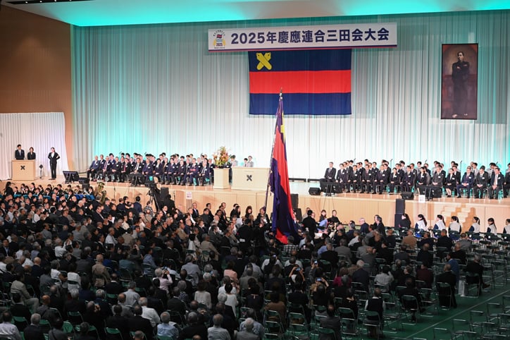 10月19日、日吉キャンパスにて2025年慶應連合三田会大会が開催されました。本大会は、慶應義塾の塾員(卒業生)やその家族の「義塾社中」が一堂に会する年に一度のホームカミングディで、約16,000人が日吉の丘に集まりました。本年のスローガンは「集え三色旗の下に」。デジタル化が加速する今だからこそ、直接語り合う機会に重きを置いて “リアル”に集い、世代を超えて交流する場になってほしいという願いがこめられています。