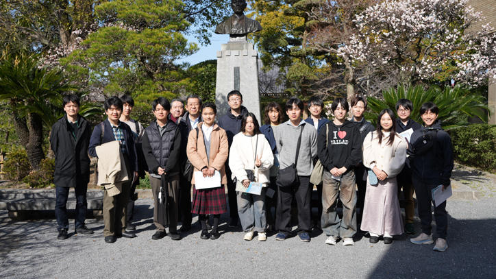 3月4日(水)から6日(金)までの2泊3日で、学生総合センター企画「福澤先生ゆかりの地を旅する —中津・小国町—」を開催しました。山内慶太常任理事、都倉武之福澤研究センター教授を講師に迎え、1~2日目は福澤先生が幼少期を過ごした大分県中津市を、3日目は福澤先生の支援を受けて日本の医学発展に貢献した北里柴三郎先生が生まれ育った熊本県小国町を巡りました。学部生から大学院生まで、さまざまなキャンパスや学部・研究科の塾生14名とともに志村正学生総合センター長も参加し、塾生たちと交流を深めました。