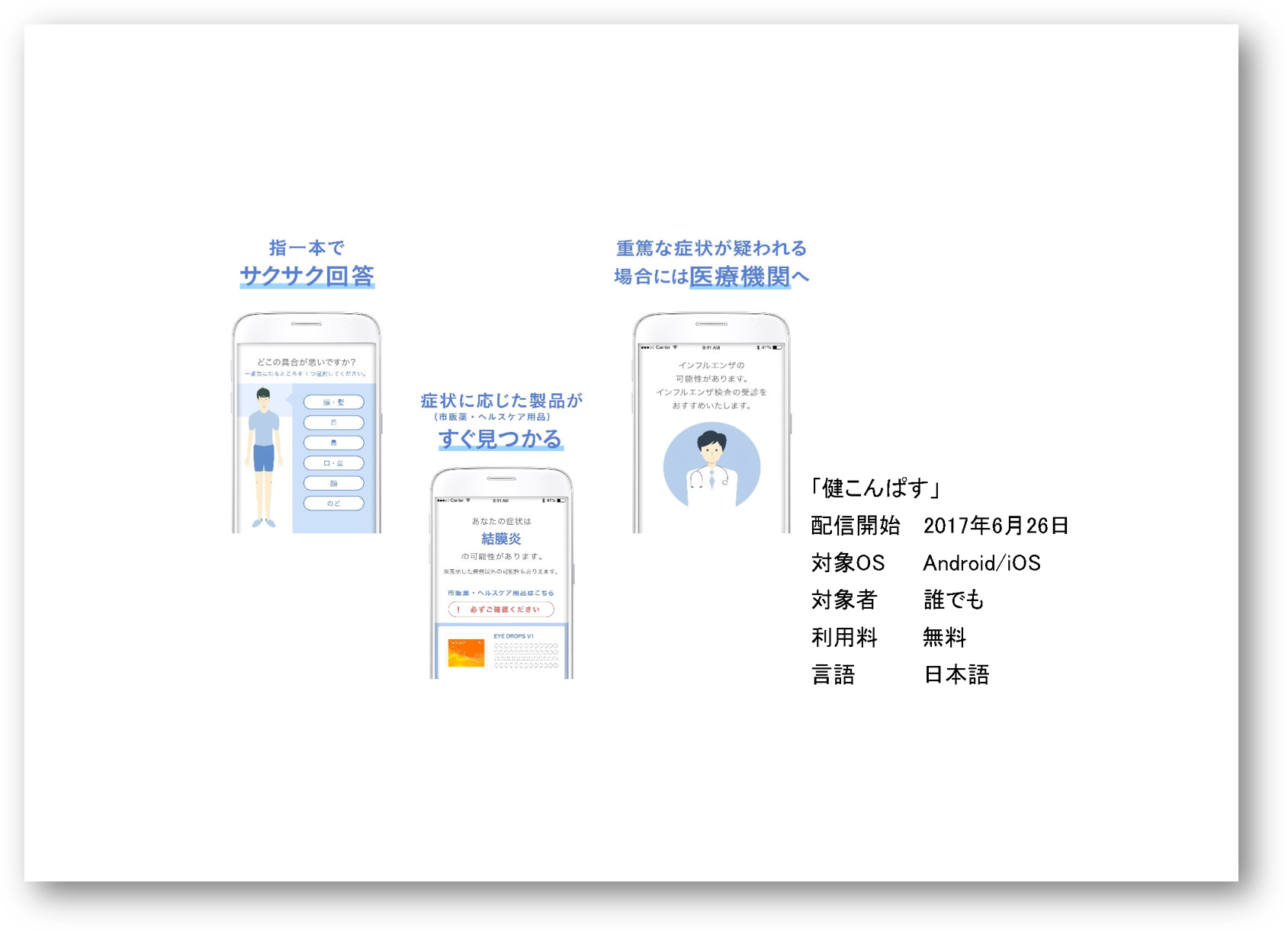 また「みいクリニック」では17年に「健こんぱす」という、セルフメディケーション支援アプリを制作しました。医師会では不調を感じたらかかりつけ医への受診を推進していますが、ネット検索の普及によって正しい情報にたどり着かないことが多くあり、大きな課題になっています。この状況をふまえて、医師と薬剤師が監修したアプリを作りました。海外に比べて日本はこの分野で後れをとっていたため、省庁や医師会とも丁寧に調整しながら、我々が先陣を切って取り組みました。「健こんぱす」はコロナ禍を受けて一気にユーザー数が増加し、SNSも駆使することで正しい情報にアクセスする窓口を増やしています。このように、日本におけるウェルネス分野のDXも徐々に風向きが変化しています。